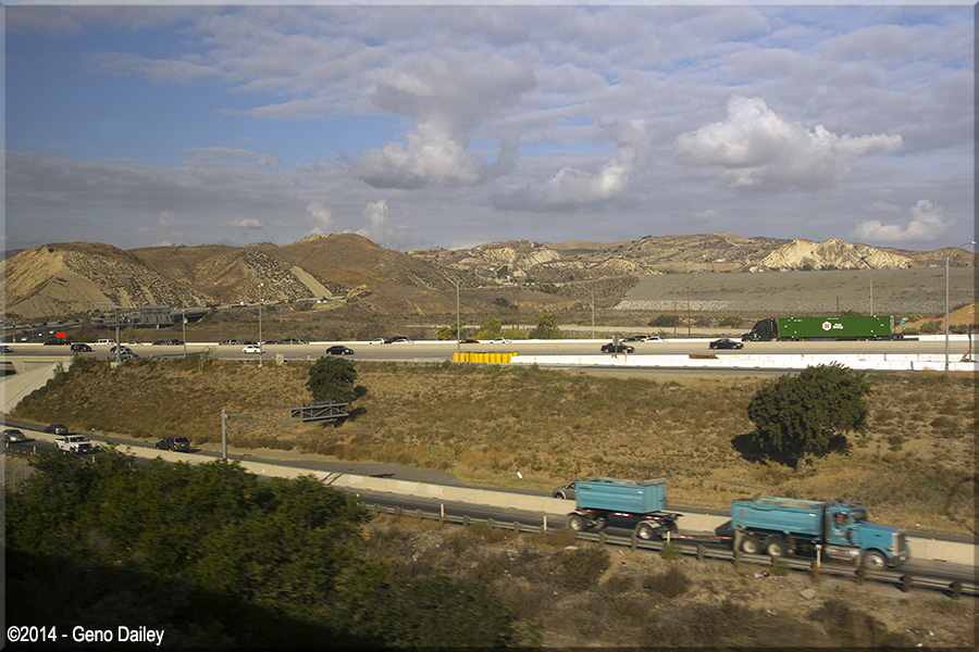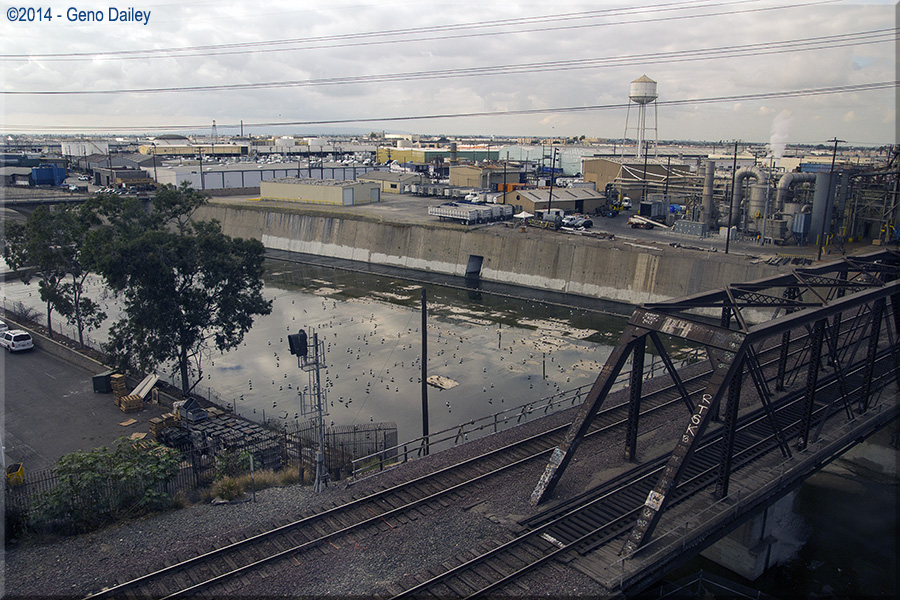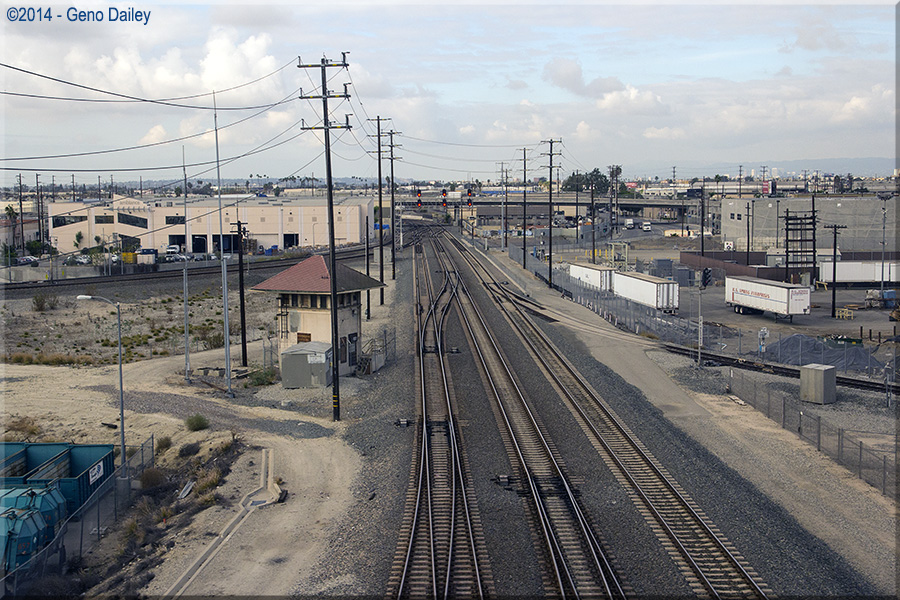 | As viewed from the flyover which is known as the Metrolink River Subdivision - West Bank Line, this is a Union Pacific main line that connects to the Alameda Corridor. Special thanks to Trainorders.com for location information. |