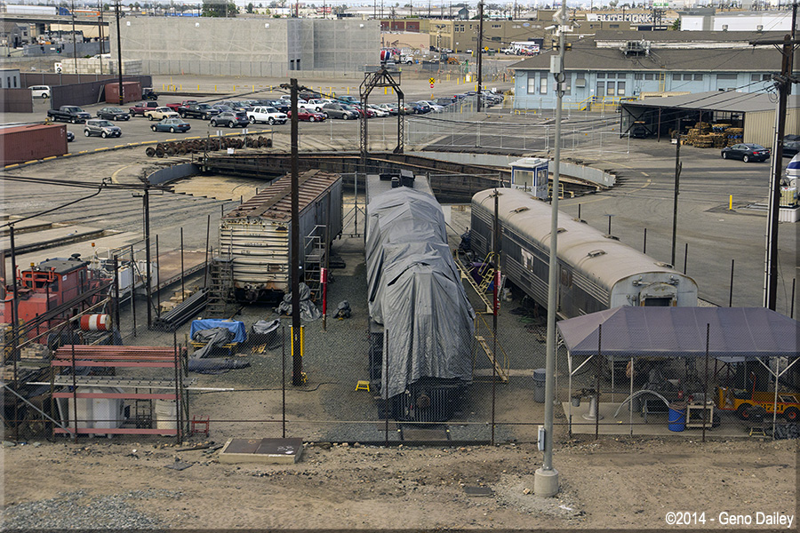 | Hiding underneath that tarp is none other than Santa Fe 4-8-4 Steamer #3751 which is based here. |