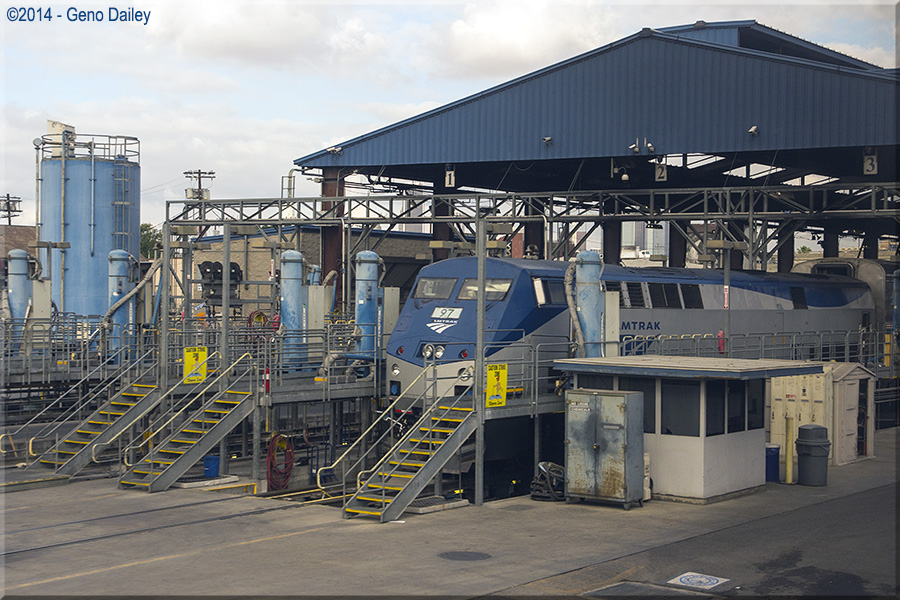| Amtrak Train #1 - The Sunset Limited awaiting its turn to enter 8th Street Yard for servicing and turning to eventually go back to New Orleans as Train #2. |
