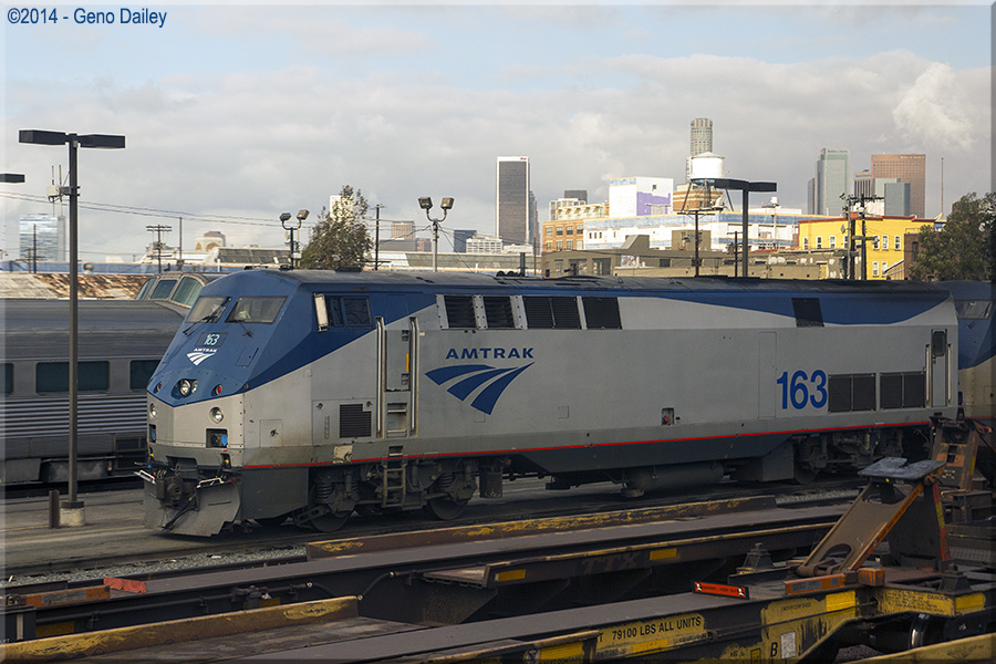 | GE P42DC #163 was spotted in the yard sporting an incorrect font used for its number, this unit lead the Coast Starlight that arrived the previous night. |