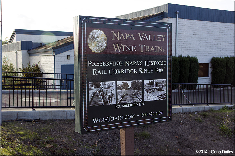 | The Wine Train awaiting departure from the Napa Station for the lunch train. This photo was taken over near Soscol Avenue with an 18-200mm zoom lens. |
