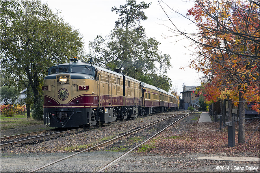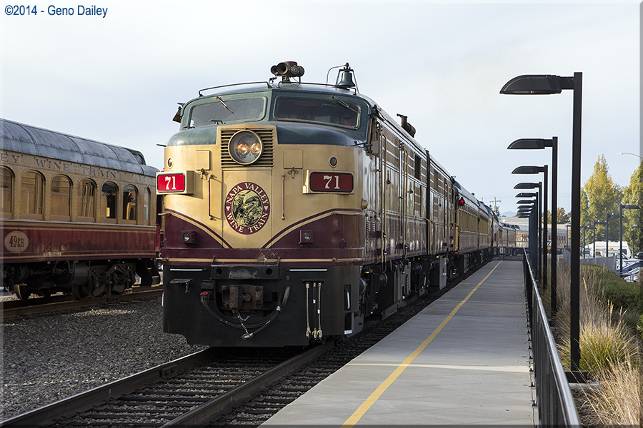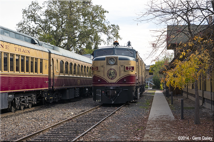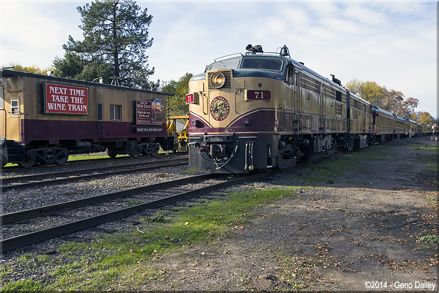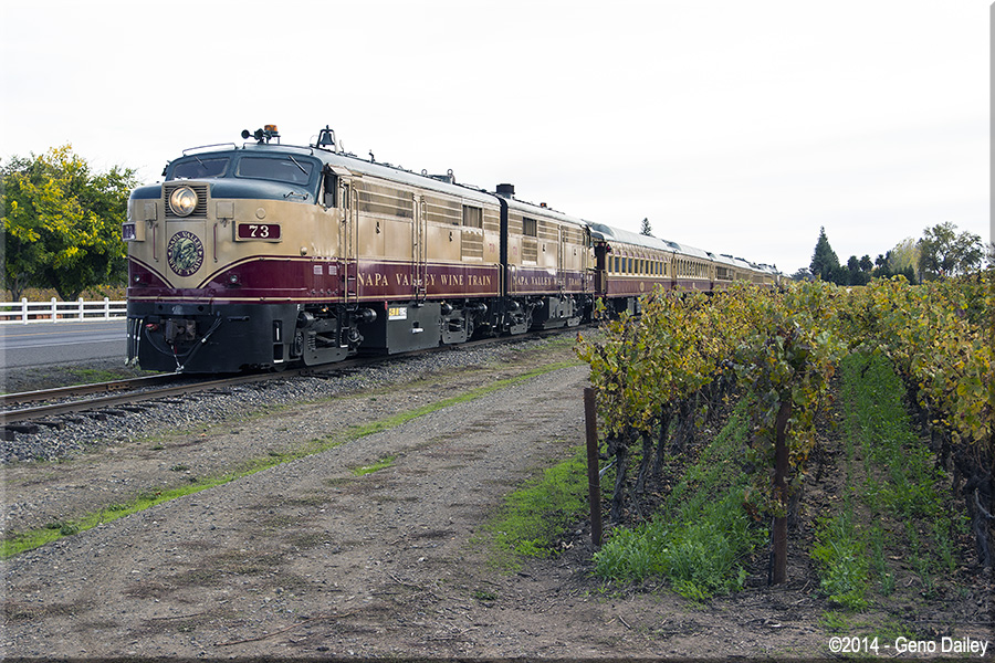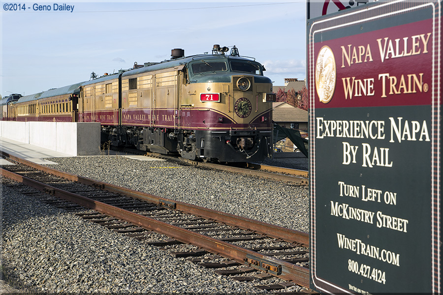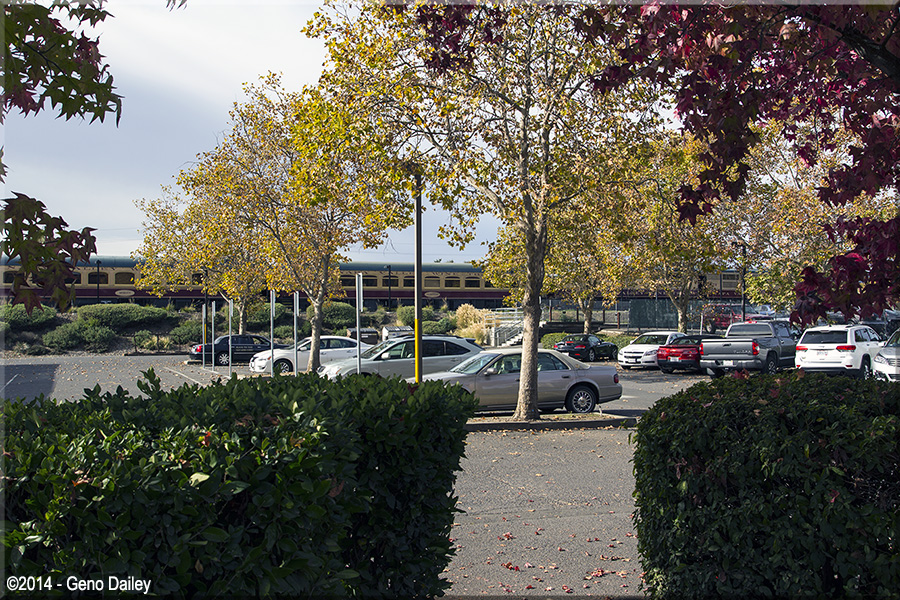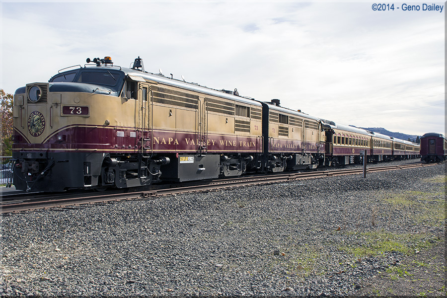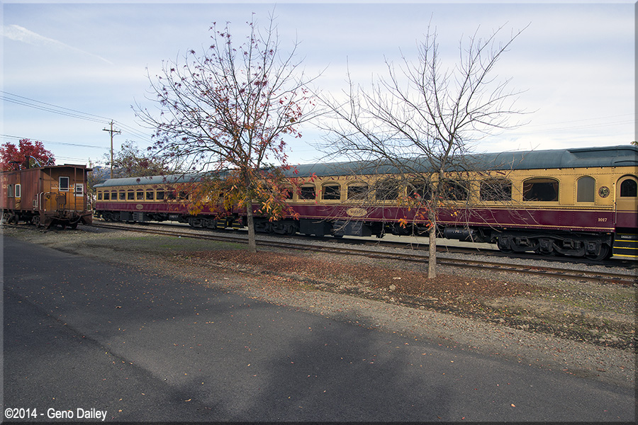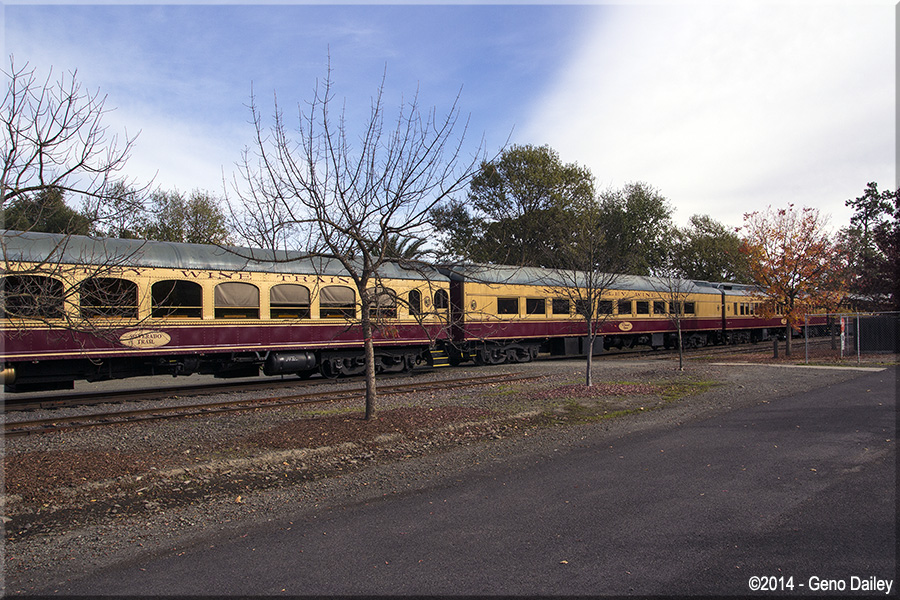 | The Wine Train awaiting departure from the Napa Station for the lunch train. This photo was taken over near Soscol Avenue with a 200mm zoom lens. |