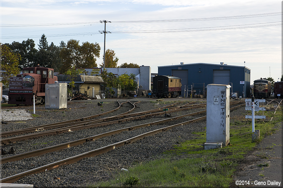 | As viewed from a road crossing, here's the beginning of the Wine Train's yard and shops. |