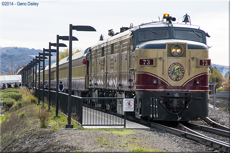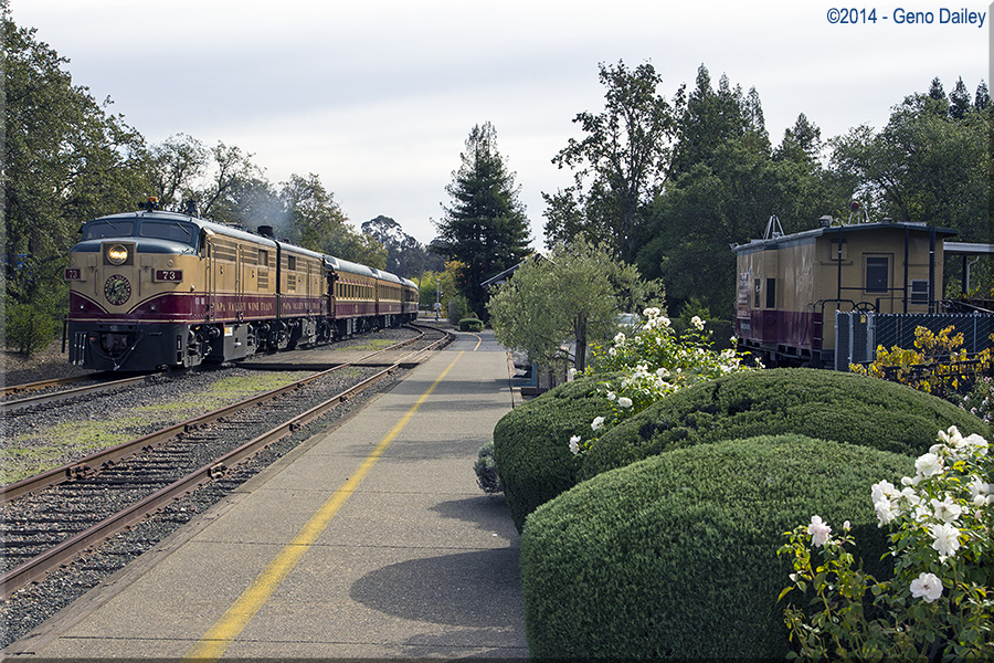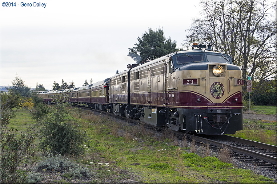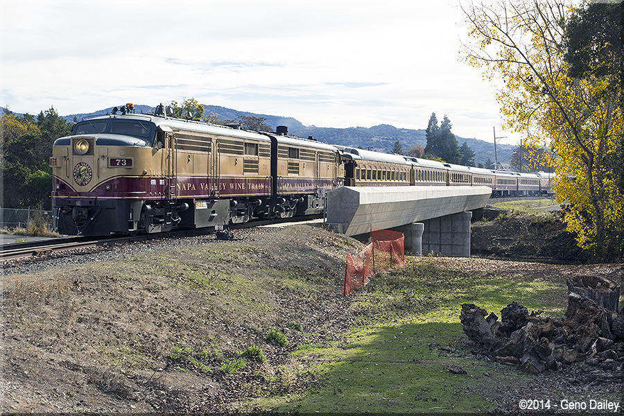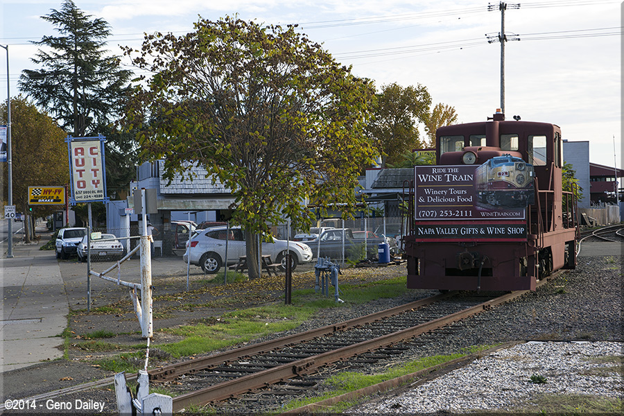 | The train is about to cross Redwood Road in the City of Napa (behind where I was standing to get this photo). |