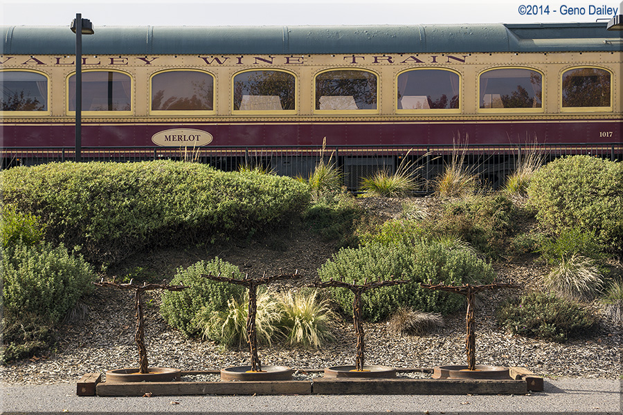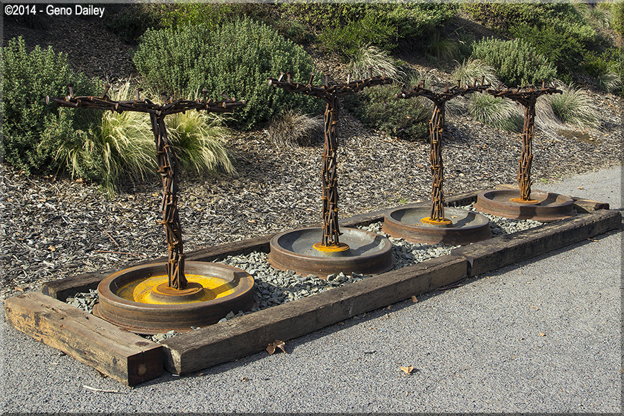 This display located in the Wine Train's parking lot at the Napa Station is known as "The Iron Vineyard". It was created by the Wine Train's
