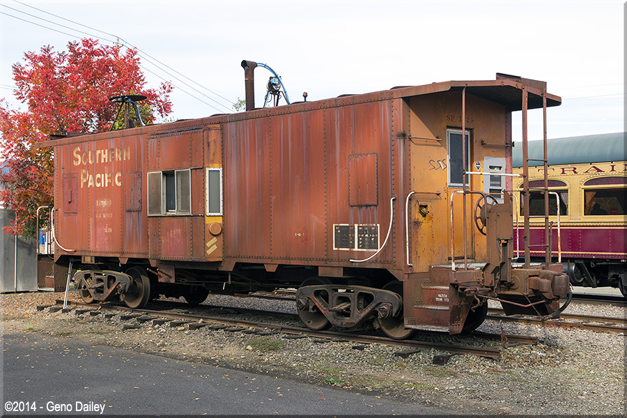 | Former Southern Pacific Class C-40-5 Bay-Window Caboose on panel track at Saint Helena. |