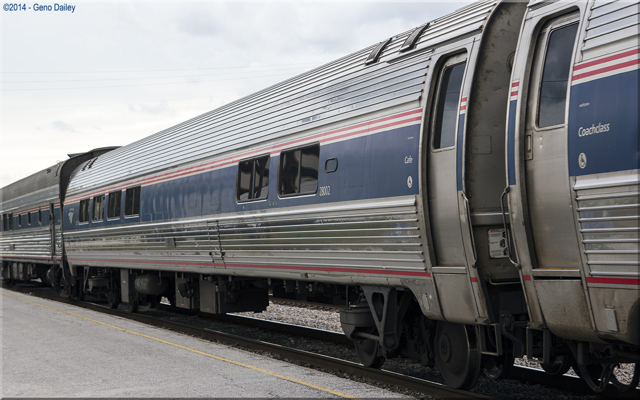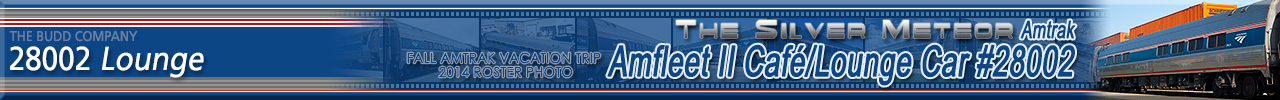 Built by Budd in January 1982 with an off-center snack bar with 10 4-place booths on the long end and 17 seats in 1, 2, and 4 seat configurations on the short end near the restroom and vestibule. Converted to a "Diner-Lite" car in July 2009 which involved removal of 3 tables on the long end, replaced by a conductor's office and storage space. The short end of the car received 19 seats arranged in two and four-seat booths. A small cooking facility was constructed in the car so these cars could be used as dining cars. Historical information about this car provided by www.amtrakbythenumbers.com. |