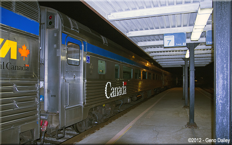 This car was originally built as a 62 seat coach for the Canadian Pacific Railway, numbered 118 and later conveyed to VIA Rail Canada and converted into an HEP-1 Coach and renumbered 8118. Historical information about this car provided by