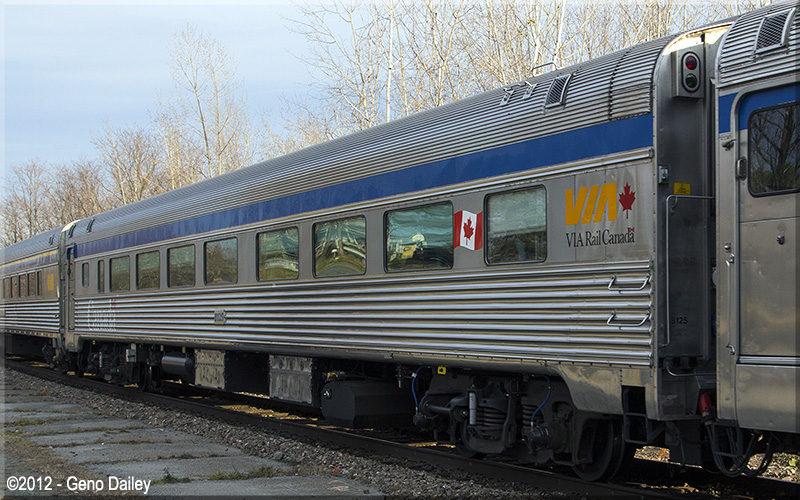 This car was originally built as a 62 seat coach for the Canadian Pacific Railway, numbered 125 and later conveyed to VIA Rail Canada and converted into an HEP-1 Coach and renumbered 8125. Historical information about this car provided by