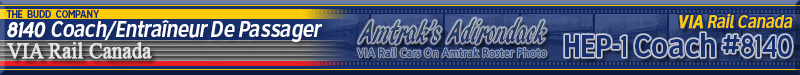 Originally built as a 62 seat coach for the Richmond, Fredericksburg & Potomac Railway, this car was conveyed to Amtrak in 1971 and numbered 5420. It was converted into a high-capacity coach by Amtrak in 1974 and renumbered 6077. Amtrak retired the car in October 1981 and it later operated on the American Zephyr as well as Rail/Sea Cruises trains both carrying the Amtrak number 6077 on the car. The car was eventually acquired by VIA and converted into an HEP-1 coach and numbered 8140. Historical information about this car was provided by www.passengercars.info and www.amtrakbythenumbers.com.