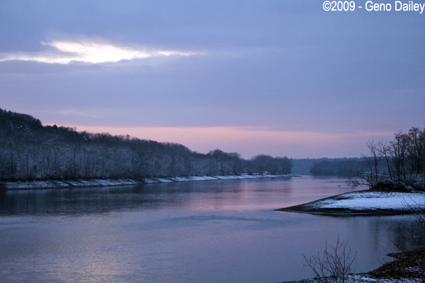 | Looking out at the Mohawk River/Erie Canal near sunset in Amsterdam. |