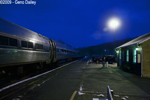 | Empire Service Train #283 at Amsterdam, NY after sunset. |
