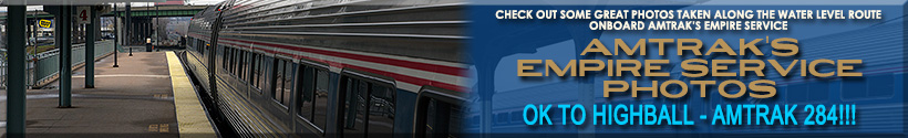 I returned to the cafe car and continued chatting with the crew. We eventually went through an area where there were lots of Blue Heron nests near CP-313 at Center Port, NY. Eventually, we arrived at the next stop of Syracuse, NY at 10:16am. Because once again, we were having a very good run and had little freight interruption, we were early into Syracuse, which for me means only one thing, TIME FOR MORE PICTURES!!! I stepped off the train to get a few photos and at 10:30am, running on time, we departed Syracuse with the next stop for this train coming up at Rome, NY. I headed back to the cafe car to continue this travelogue. We had to stop at CP-270 to let CSX Train Q-236 pass as we were entering a work area. We just kept moving from then on. Our next stop was Rome, NY where we arrived at 11:20am and departed at 11:21am only 5 minutes late. Next up was our next stop of Utica, NY. The train would arrive there at 11:34am and would be on Track #1 which is further away from the station building though it's closer to the equipment parked at Utica Union Station that belongs to the Adirondack Scenic Railroad for which Utica is its southern terminus. After taking a few more photos, I reboarded the train and we departed Utica at 11:41am, only 2 minutes late, again, no big deal.