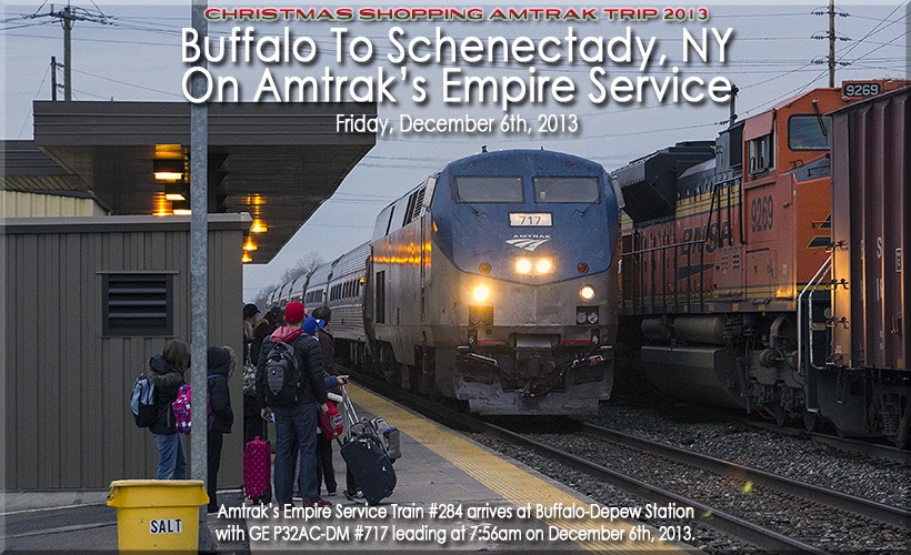 This would be my annual Christmas Shopping trip for 2013. My original plan was to take Train #48 - The Lake Shore Limited from Buffalo-Depew Station to Schenectady, NY where I would rent a car from Enterprise and would be staying at the Courtyard By Marriott Hotel in Albany. My plan for the ride home was to ride Empire Service Train #281 back to Buffalo on Monday, December 9th.