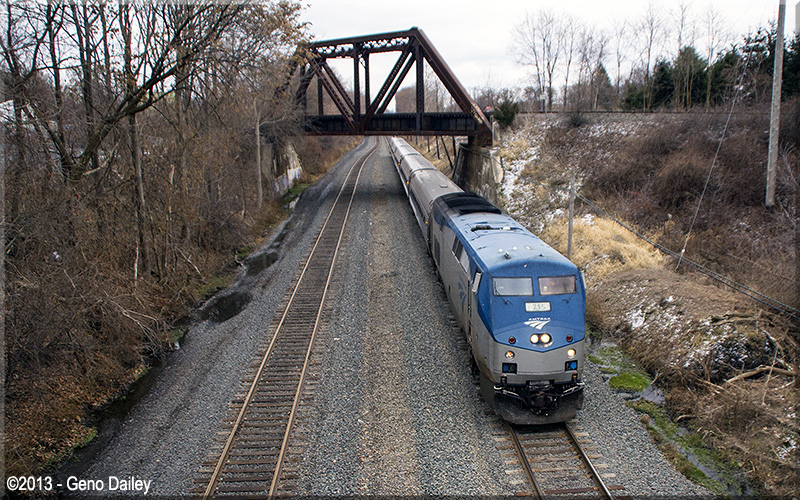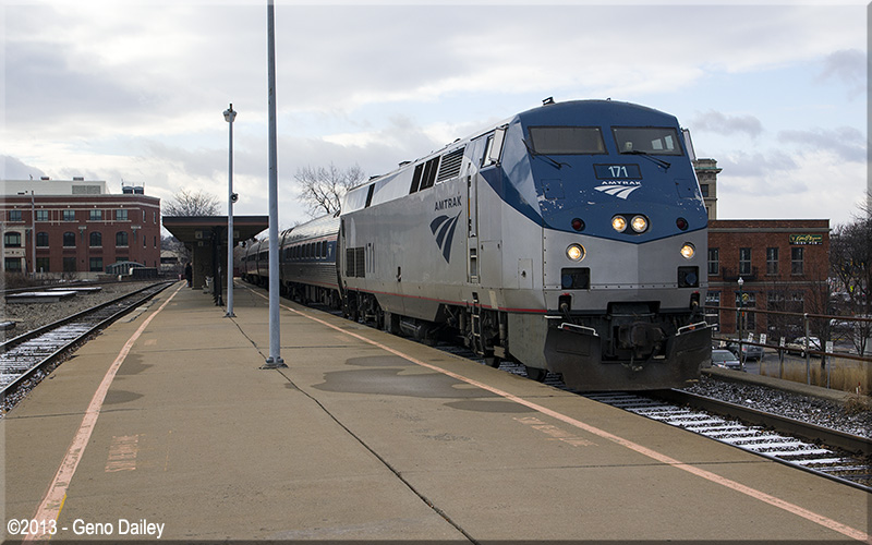 with GE P42DC #171 leading a mix of Amfleet I and Amfleet II cars on this Toronto-bound train.