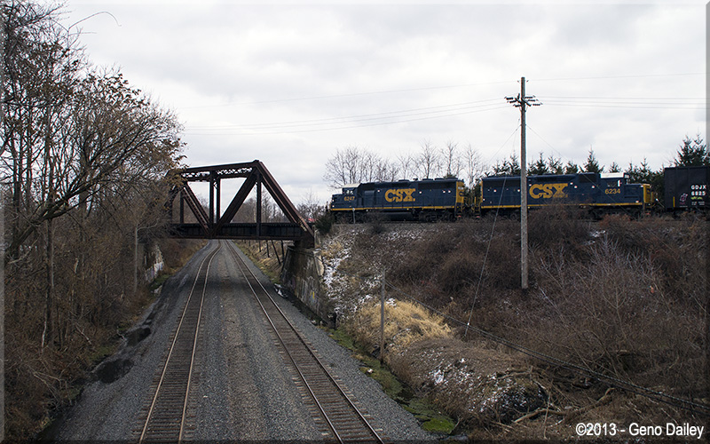 | A CSX freight passes over the mainline on the Carman Sub with a pair of EMD GP40-2's for power. |