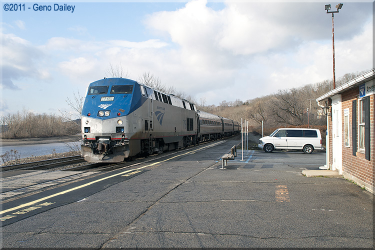 The first Amtrak train of the day is Empire Service Train #286 from Niagara Falls on its way to New York Penn Station.