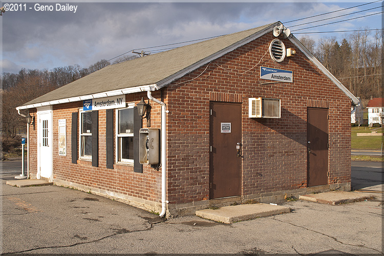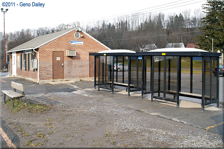 This is the Amsterdam station as of December 2011. The 2 bus shelters in the right half of the photo are basically the "station"