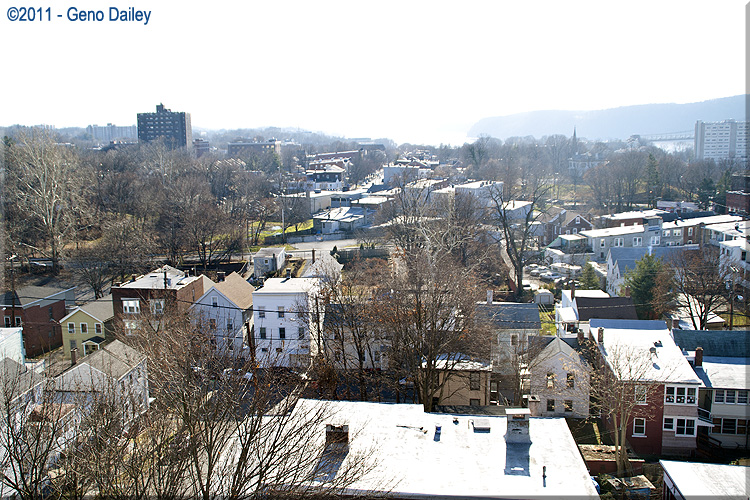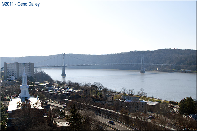 | Now getting closer to the river, we can see the Mid-Hudson Bridge in the background. |