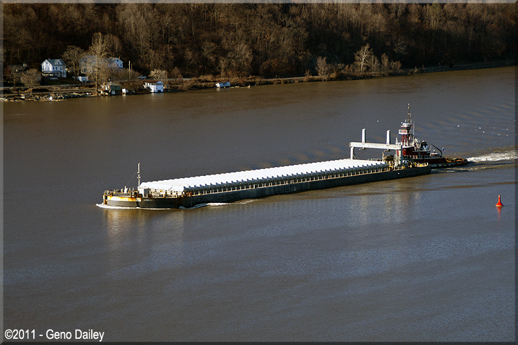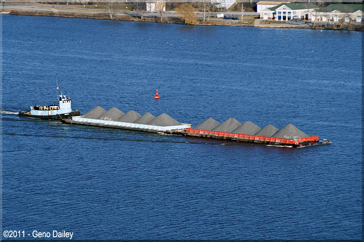 | Another tugboat, this time pushing 2 barges full of gravel. |