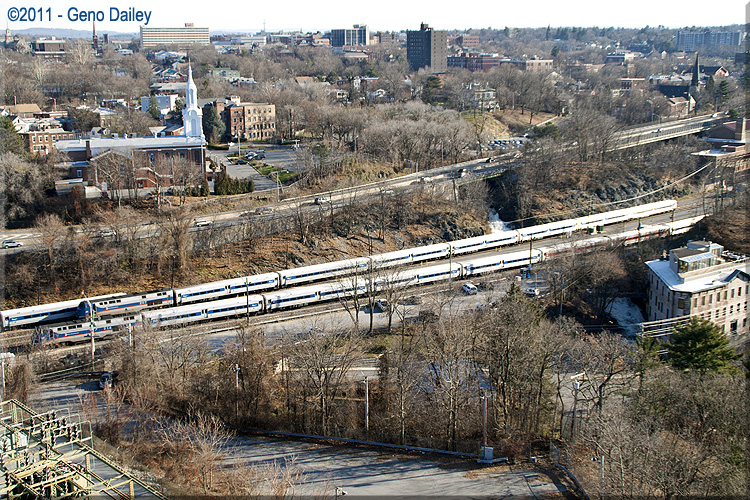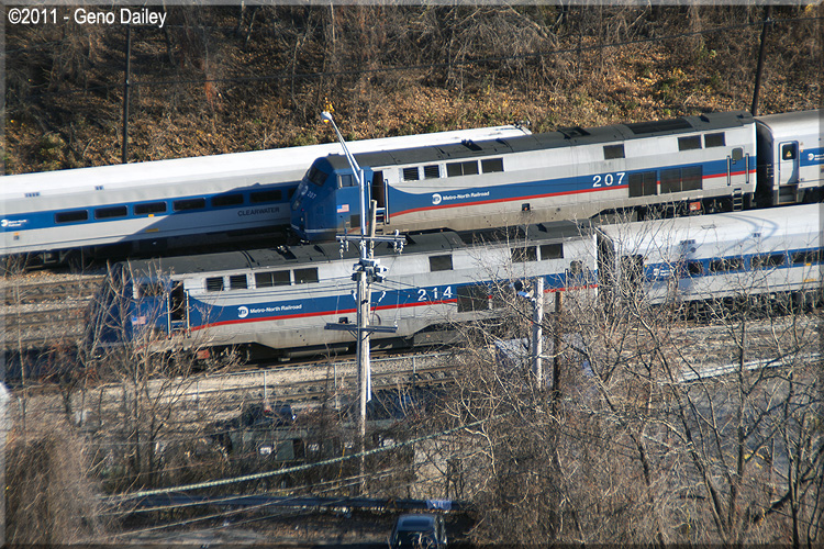 | A zoomed out view from the bridge of 2 Metro-North P32AC-DM's. |