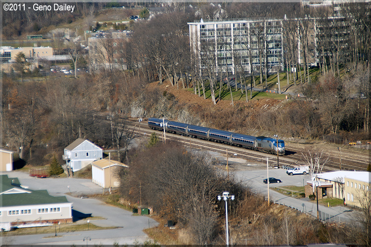 Of course, one of the things I wanted to do while waking over this bridge was to get in some railfanning! Here is Amtrak