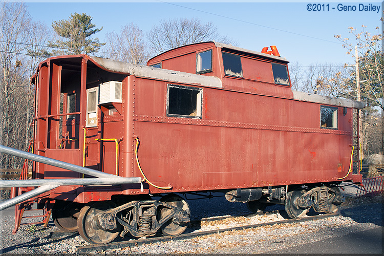 | This former Pennsylvania Railroad N-5B Caboose is on display in Highland near the end of the bridge. |