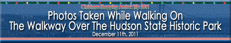 | I made the drive down to Poughkeepsie, NY from Albany which is located about 75 miles north of New York City (by the route of the railroad). I parked my rental car on the Poughkeepsie side of the Walkway Over The Hudson State Historic Park and started walking across the bridge. This bridge once carried the New York, New Haven & Hartford Railroad's Maybrook Line. Today, its a walking and bike riding trail that provides great views of the mighty Hudson River. If you're ever in this area, I encourage you to visit this park! The photos shown here were taken during my visit, Enjoy!!! |