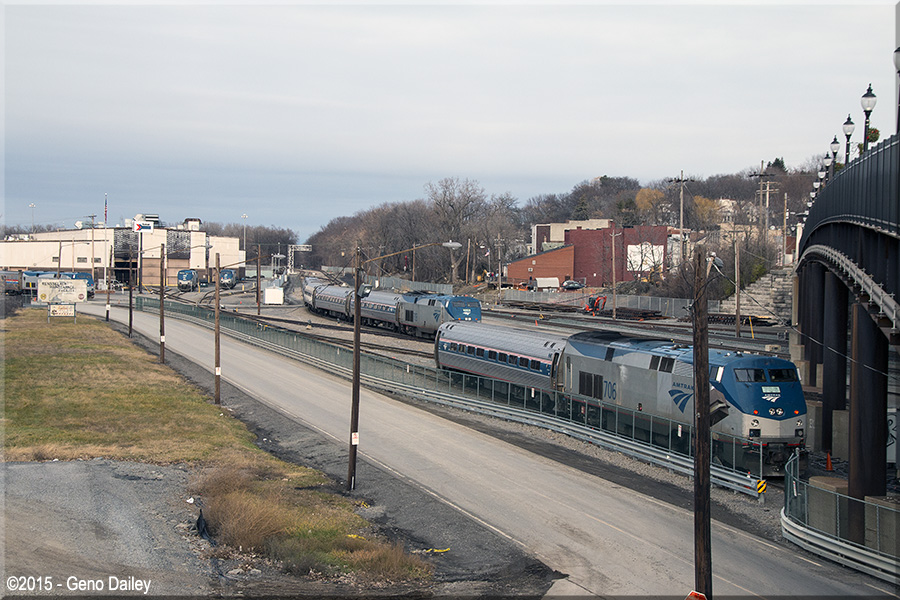 is being completed at the Albany-Rensselaer Station Today's train had GE P42DC #45 for power.