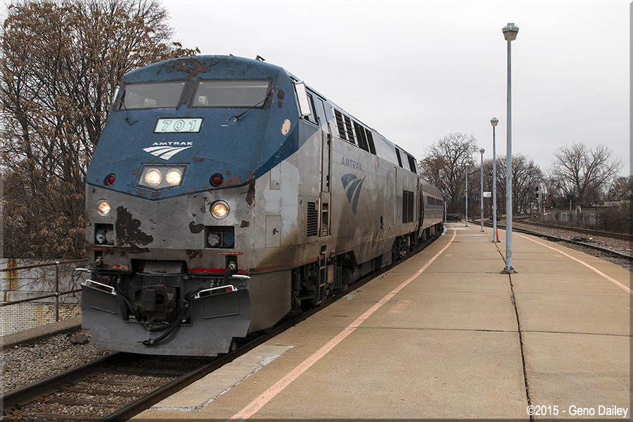 Amtrak Empire Service Train #284 arriving at Schenectady with GE P32AC-DM #701 for power. This train originated in Niagara Falls this morning. |