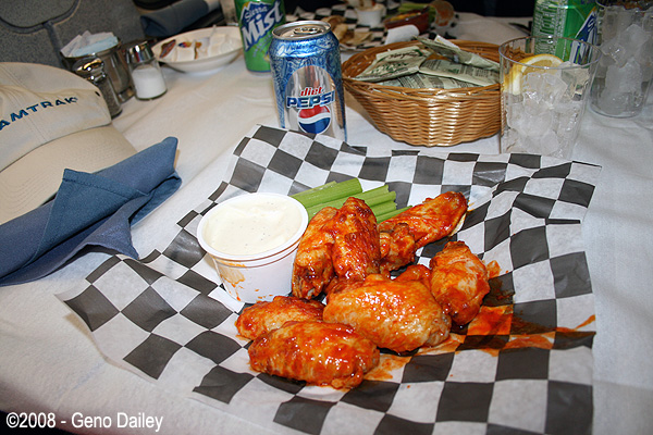 Amtrak's Buffalo Chicken Wings available in the dining car! They were hot, but mild! |