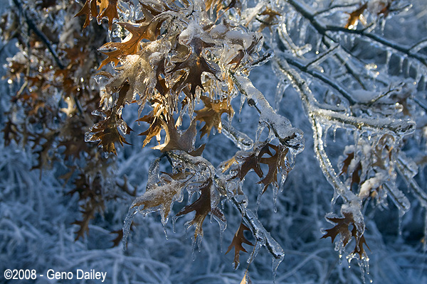 Just to give you some idea of what kind of ice I was talking about with this storm, this was taken in the parking lot of my hotel on Saturday morning. This is an oak tree whose leaves are encapsulated in the ice, amazing!!! |