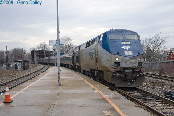 Next up is Empire Service Train #284 coming in from Niagara Falls with banged up P32AC-DM #708 on the lead. |
