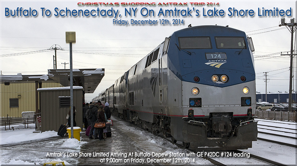 Today I would begin my annual Christmas Shopping Amtrak trip for 2014, a tradition for me that is now in its 14th year! My original plan was to ride Train #48 - The Lake Shore Limited from Buffalo-Depew Station to Schenectady, NY. I would be renting a car from Enterprise and staying at the Courtyard By Marriott Hotel on Washington Ave. in Albany and would ride Empire Service Train #281 back to Buffalo three days later. I was supposed to have this same itinerary last year but ended up on Empire Service Train #284 instead. That trip ended up being excellent, but with Heritage Diners on their way to retirement at some point in the not-so-distant future as the Viewliner II Diners eventually start coming online, I knew I needed one more chance to eat in a Heritage Diner before they are retired so I really wanted to ride #48 again, and this year, things worked out as planned.