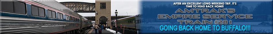 | Once I completed my railfanning at Amsterdam, I drove one of my friends back to his home in Saratoga County then would drive back to Albany and have a quick dinner at Taco Bell before going back to the hotel to color-correct photos taken so far in this trip so as to get that work out of the way and only have one day's worth of photos to work on once I get back home. This has been a very productive and excellent trip, and with one more train ride left, so as to get back home to Buffalo, I decided to call it a day. Click the link below for the trip home... |