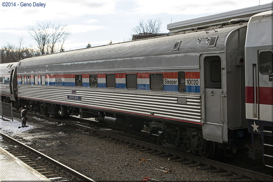 Amtrak Heritage Sleeping Car #10020, a car that was built by Budd in 1950 for the Union Pacific Railroad and named "Pacific Bend".