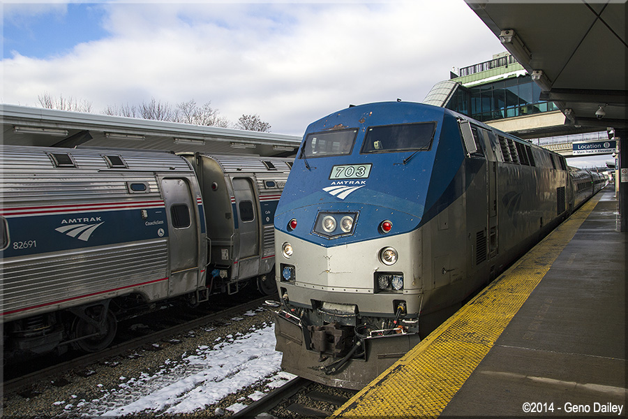 Empire Service Train #284 is seen arriving at Albany-Rensselaer with GE P42DC #703 for power. This train originated this morning in Niagara Falls