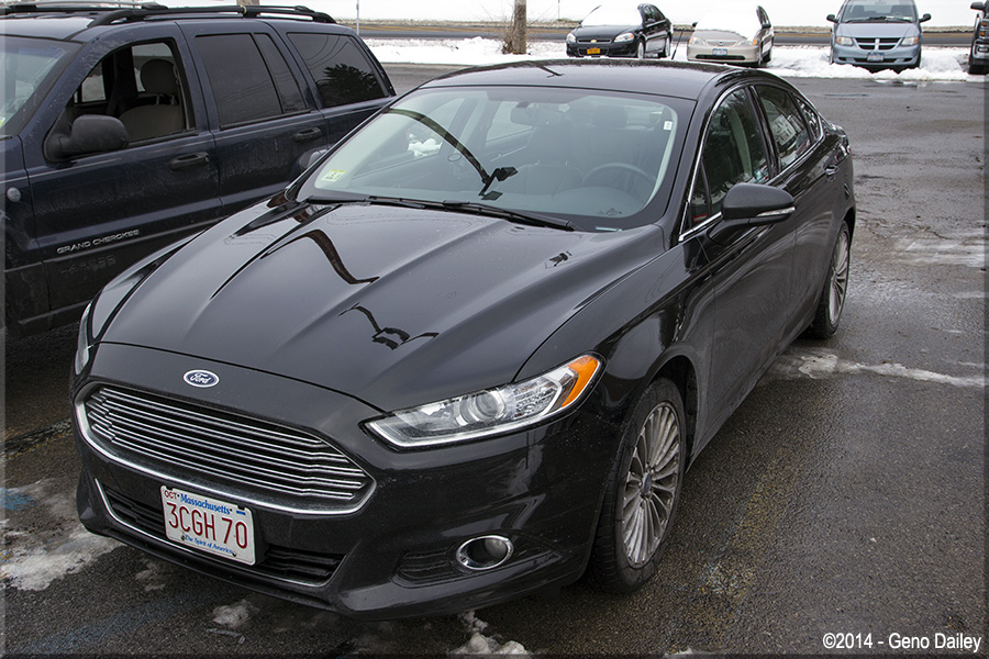 | My rental car while I was on this trip, a 2014 Ford Fusion Titanium, that for unknown reasons had Massachusetts plates! |