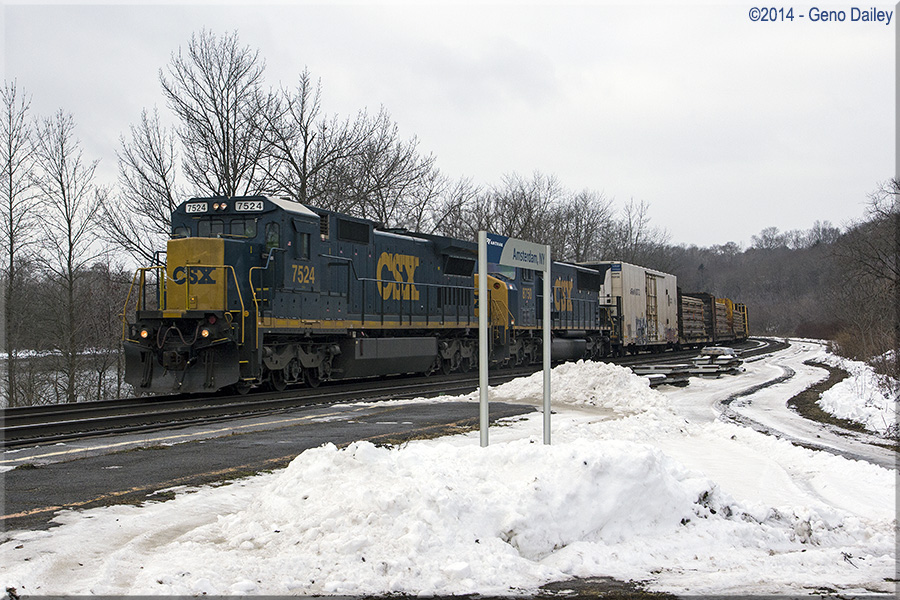 | On December 14th, I headed over to Amsterdam, NY and here we see eastbound CSX crude oil Train K-010 lead by BNSF GE C44-9W #4569. |