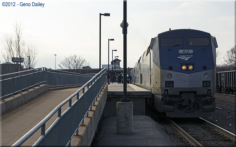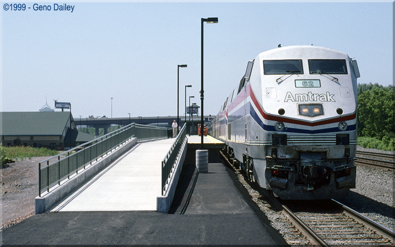 I rode into town (Train #286 back then) arrived. It was running 3 hours late but had P42DC #62 leading and though you can't see it in the