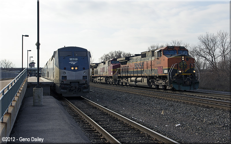 OK, by the looks of this photo, are we in New York??? Yes, actually! Here we have Train #48 taking a break at Syracuse, NY with