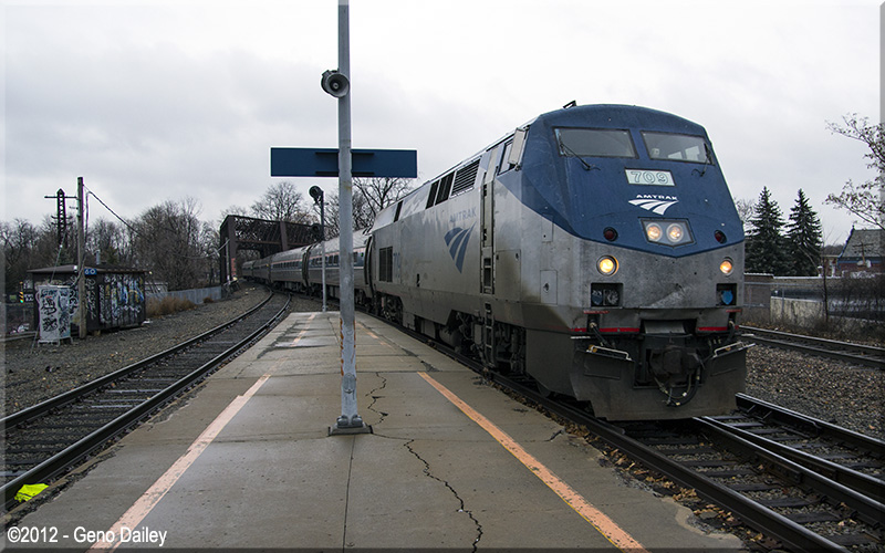Next up is Amtrak Empire Service Train #284 from Niagara Falls arriving in Schenectady with P32AC-DM #709 for power. |