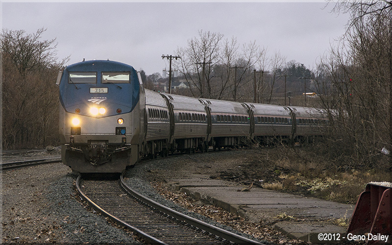 Now arriving in Schenectady, and also my train home, is Amtrak Empire Service Train #281 with P32AC-DM #715 for power. |