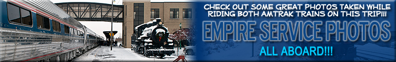 | Amtrak truly did a great thing in calling me last Friday to offer to switch my ticket to Train #284 from #48. As much as I missed having a meal in the dining car, the alternative of missing picking up the rental car would have caused potential problems with the rest of this trip. The crews on both trains from the conductors to the cafe car attendants were excellent. Railfanning in Amsterdam and Beacon was excellent as well. The shopping all got done very easily and quickly and visiting Orange County Choppers was incredible! If you ever watch the show on the Discovery Channel and you're in the Newburgh area, you need to check out their place, even if you don't ride or own a motorcycle yourself (I don't). Below are links to photos taken on this trip! Until next year, and another big Amtrak trip, Happy Holidays, and Happy Railfanning… |