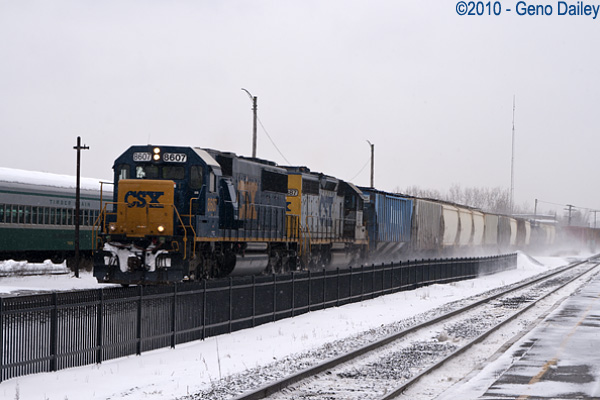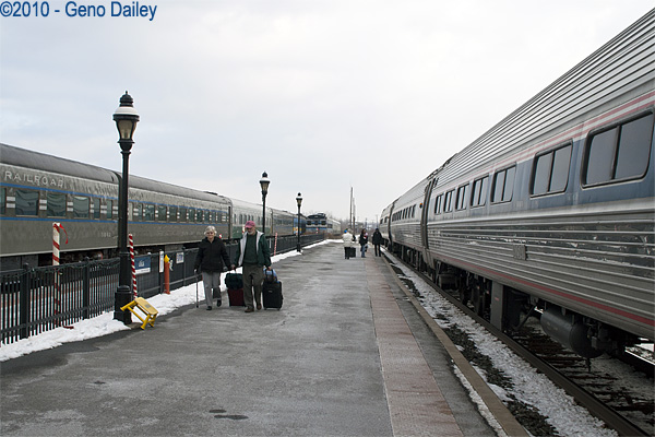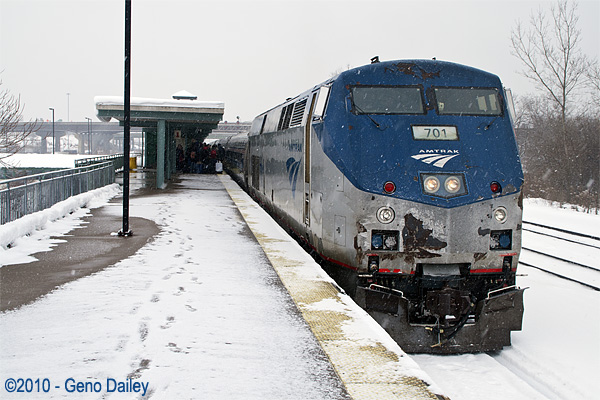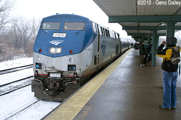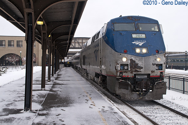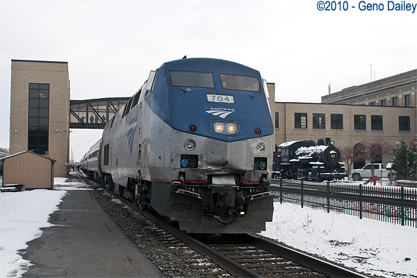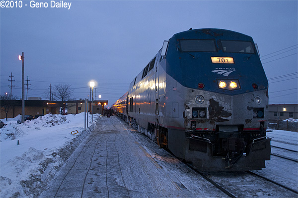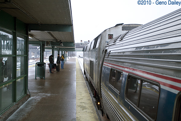 | Amtrak Empire Service Train #284 having just arrived at Buffalo-Depew Station on December 17th, 2010. |