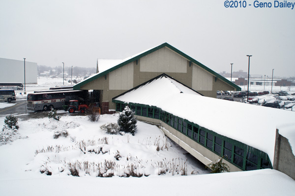 | The Snowy Syracuse Transit Center which is used by Amtrak and local/inter-city buses. |
