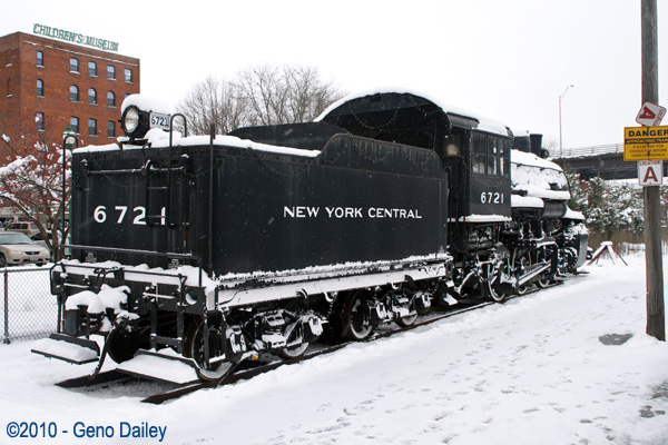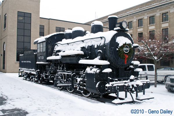 | New York Central 0-6-0 Steamer #6721 on display at Utica Union Station. |