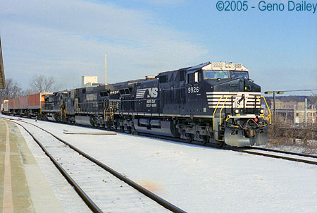 NS has trackage rights on the Canadian Pacific line that runs passed the station. Amtrak uses this line North of here for the Adirondack as well as the Ethan Allen Express train that runs through Saratoga Springs, also North of here.