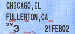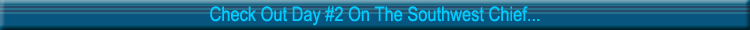 First, a couple notes on the coach: This was my first trip ever riding in a Superliner Coach! The coach was roomy and clean but the tray table was bent in such a way that it didn't sit down flat. Also the car had no electrical outlets at each seat so I couldn't plug in what was now my scanner with a dead set of rechargeable batteries! I ended up putting in a set of Duracell Alkaline Batteries to finish out the trip. The passenger who sat next to me, was on his way to Los Angeles from Boston, he told me he was a video game engineer and had done work with some software manufacturers who make video games for the X-Box and the Sony Playstation 2.