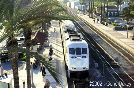 Metrolink Train with F59PHI #886 arriving at Fullerton at 4:02pm. BACK TO TOP: